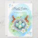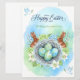 Send warm Easter wishes with this beautiful watercolor greeting card. Featuring a cozy nest with decorated Easter eggs, two adorable brown bunnies, delicate pussy willow branches, white lilies, blue flowers, and peaceful white doves carrying olive branches. The soft blue and green watercolor background creates a fresh spring feeling.