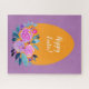 Happy Easter floral egg. Cute orange egg with floral watercolor bouquet on jigsaw puzzle