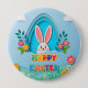 Happy Easter | Whimsical Easter Bunny and Floral 10 Cm Round Badge