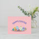 Happy Easter with colourful eggs pink Foil Holiday Postcard