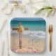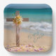 These gorgeous paper plates are the perfect addition to your Easter breakfast, brunch or dinner! The design features a wooden cross with yellow Easter lilies, delicate pink ribbon, and scattered flower petals in the sand with the turquoise ocean in the background. The beautiful script text reads "Happy Easter." The paper plates are available in square or round shape, and two size options. Sold in sets of 8. Please browse our complete collection of tropical-themed Easter cards, gifts, and home decor. Special design requests accepted.