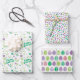 A coordinated set of Easter gift wrap sheets including one that says "Happy Easter", one sheet of polka dots and one sheet of Easter Eggs.