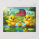 Happy Easter Yellow Chicks in a Pond by a Red Barn Postcard