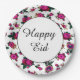 Happy Eid Paper Plates , Pink Floral for eid parties celebration , decorate your table with this beautiful design