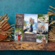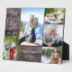 Wedding Anniversary photo plaque which you can personalise for any years and 5 of your favourite pictures. The wording reads "# years in to our happy ever after" and the template is set up ready for you to add the anniversary year, your name and date established. The design has a brown rustic country wood look, lettered with casual script and skinny font typography. Upload your photos, working from left to right, which will be displayed in a mix of portrait, square and landscape formats. If you have any problems with placement of your pictures, trying cropping to the relevant shape before uploading.
