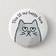 Funny gray cartoon cat with a bored expression on its face with the words "this is my happy face" above its head in a fun curved text.