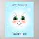 Happy face & happy thoughts on light blue poster