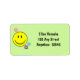 2”l x 3.75”w light green address label with an image of a bright yellow happy face, a 70s icon to be sure, and three whimsical flowers. See matching confetti, favour bag, favour tag, round sticker and wrapping paper. See the entire Disco 70s Label collection in the INVITES | Stickers & Labels section.