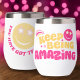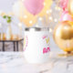 Graphic preppy teen style pink and yellow smilie face keep being amazing slogan thermal tumbler. Personalise with your own name and message, currently reads Keep being amazing. You have got this Millie. © Original graphic art and design by www.mylittleeden.com