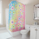 This "happy" shower curtain features a pattern of fun and cute faces in pastel colours, digital art. Fun shower curtain!