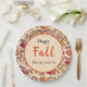 Happy Fall Holiday Autumn Leaves Red Berries Digital Art Paper Plate.
