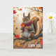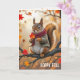 Happy Fall Squirrel Holding a Maple Leaf Card