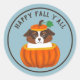 Happy Fall Y'all! This sticker features an adorable Australian shepherd puppy in a pumpkin saying “Happy Fall Y'all” but you can customise the magnet by replacing the message with your own message or name (e.g., Hello Pumpkin).