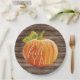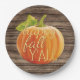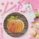 Happy Fall Y'all Orange Pumpkin on Planks Pattern Paper Plate