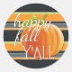 Happy Fall Yall Pumpkin On Vibrant Stripes Pattern Classic Round Sticker