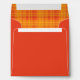 This envelope is designed using classic Fall and Halloween colours. Let's just combine them into "Falloween" and this envelope can be used for multiple occasions. The outside of the envelope is burnt orange while the inside is a plaid pattern of oranges. The front of the envelope displays the text "Happy Falloween". This is a template that you can personalise.