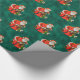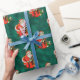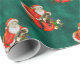 A jolly fellow, is Father Christmas! Here we have the man himself dressed in his red Santa suit, dipping into his Santa sack of goodies for a present for you! A very festive pattern of dozens of Santas, set against a green background.