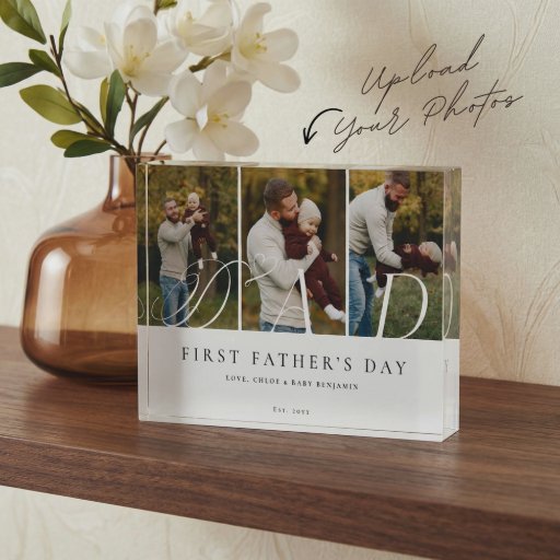 Celebrate Dad with this elegant “Happy Father’s Day Best Dad Ever” photo collage card, designed to beautifully showcase three cherished memories in a modern and meaningful way. Featuring a clean, minimal collage layout with space for five photos, this design keeps the focus on your most heartfelt moments while maintaining a refined, stylish aesthetic. The word “DAD” is displayed across the photos in sophisticated typography, with the first letter styled in elegant calligraphy and a subtle heart detail, paired with a timeless serif font for a polished look. The phrase “our whole world” can be personalized along with family members’ names and greeting, making this card truly special and personal. Thoughtfully designed with a photo-focused layout and heartfelt message, this greeting card is a beautiful way to honor and celebrate Dad on Father’s Day, birthdays, first Father’s Day, or for new dads. Personalize it with your own heartfelt message to create a meaningful keepsake he’ll treasure. Design and layout by Moodthology Papery.