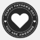 Happy Fathers Day Black White Heart Fun Unique Classic Round Sticker