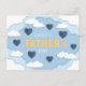 Cute Father's Day celebration design, cloudy sky and flying blue hearts in the sky