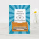 An orange vintage typewriter with a blue sunburst background. A piece of paper from the typewriter which has the words Happy Father's Day Ex-Husband in typewriter font and a silhouette glasses. A lovely father's day card for your {spec}tacular Ex-Husband! © Ness Nordberg