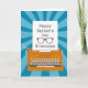 An orange vintage typewriter with a blue sunburst background. A piece of paper from the typewriter which has the words Happy Father's Day Granddad in typewriter font and a silhouette glasses. A lovely father's day card for your {spec}tacular granddad! © Ness Nordberg