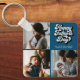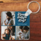 Happy Fathers Day Groovy Retro Three Photo Gift keychain in teal and blue colours.