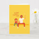 A Happy Father's Day card featuring an illustration of a father and daughter enjoying music