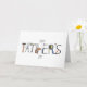 This folding card is printed with a hand-drawn Father's Day design featuring an assortment of tools that are arranged in to the message "Happy Father's Day".