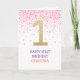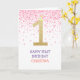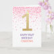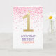 Happy First Birthday Girl Pink Confetti Gold Cute Card