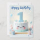 Happy First Birthday with a Cute Birthday Cake, Gifts, Balloons and the Number One