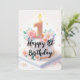 Happy First Birthday with Birthday Cake, Flowers and the Number One