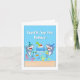 Get ready to celebrate someone’s first birthday with this festive shark-themed birthday card! Two cheerful sharks hold a birthday cake resting on a surfboard-shaped cake plate, while a playful baby shark pops out of the cake, chomping on a big number "1" the perfect symbol for a first birthday celebration. An array of colourful sea creatures, including an octopus, clownfish, sea turtle, and more, swim beneath the scene, adding extra ocean fun and charm.
