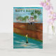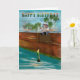 Original digital painting by Ines Miller; whimsical young teddy bear fishing on a wooden port. This brown teddy bear card may be personalised with your own text or special message.