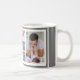 Unique first Christmas gift idea for the new dad -A modern photo coffee mug with a collage grid created with 5 pictures and message on a trendy grey colour block.
