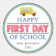 School Bus Happy First Day Of School Favour Labels / Stickers (Red / Green / Blue / Black / White)...These fun and cute happy first day of school labels / stickers are ideal for back to school treats and gifts for students. Whether you're celebrating the first day of kindergarten, first (1st) grade, second (2nd) grade, third (3rd) grade, fourth (4th) grade, fifth (5th) grade, sixth (6th) grade, seventh (7th) grade, eighth (8th) grade, preschool / pre-school, high school, etc....these stickers are perfect for any occasion. Well your students or classmates back to school for a fun and educational new school year. Fully customisable...just change the name of the teacher or the student and the school year and your favour stickers are ready to be used. Great for any teacher to hand out to her classroom of new students. Also perfect for any student to bring attached to goodies for his or her new school mates in class. Available in a wide range of colours. See WindyCityStationery.com for our complete line of labels in a wide range of colours as well as matching postage stamps, thank you cards, return address labels, save the dates, wedding stickers, class of graduation stickers, and more.