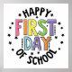 Happy First Day Of School Teacher Education Modern Colourful Poster features a simple colourful design with the text "Happy First Day Of School" in modern script typography. Perfect to brighten a classroom or school entrance. Designed by Evco Studio www.zazzle.com/store/evcostudio