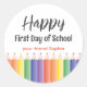 Prepare to kick off the new school year with joy and enthusiasm using our Colourful Happy First Day School Classic Round Sticker. This vibrant design showcases a rainbow of pencils, making your child's classmates feel special and welcomed. Customising these stickers is simple—just fill in your details in the "personalise this template" section. These charming stickers are ideal for elementary or preschool students to greet their classmates in a fun and unique way!