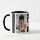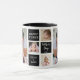 Unique first father's day gift idea -A modern photo coffee mug with a collage grid created with 5 pictures and message on a trendy black colour block.