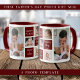 Unique first father's day gift idea -A modern photo coffee mug with a collage grid created with 5 pictures and message on a trendy Maroon colour block.