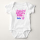 For first time dad, this 'Happy First Father's Day Daddy' text and hearts image in pink with monogram for baby's name in blue, from a baby girl.
