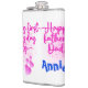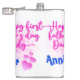 Well made flask, a little better than I had expected. Flask came in clear plastic box which gave it a nice presentation when I took it out of the zazzle packaging. Image is not printed on flask but on sticker. Don't know how this will hold up I haven't used it yet. This would make a Great gift! I plan to purchase more for friends! Cheers. I thought a little brighter than computer. Very crisp, writing wasn't