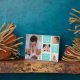 First father's day gift idea -A modern photo plaque with a collage grid created with 4 pictures and message on a trendy green colour block.