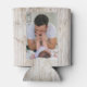 First father's day gift idea -A modern photo can cooler with a collage grid created with 4 pictures and message on a trendy Wood block.
