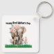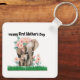 Happy First Mother's Day cute elephant keychain. This design features a cute happy first Mother's Day elephant design with some flowers.