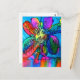 Happy Flower kid's art pink and blue pen and ink Postcard