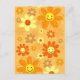 Really cute cartoon floral background designed in shades of orange with daisies with happy smiling faces. Image available on various gifts and products.