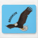 This happy bald eagle is flying high in the sky. Drawn in fun illustration style.