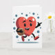This cheerful Valentine’s Day card features a bold red heart brought to life as a fun character. The heart has black arms and red shoes and appears to be walking confidently across a bright white background. With a wide smile and lively eyes, it holds an American football tucked under one arm, while the other arm points forward as if leading the way. A soft shadow beneath its feet adds motion and depth. Teal-blue circles float behind the heart, adding extra charm and visual interest. The bright colors and friendly details give the card a joyful, upbeat feeling. It’s a lighthearted way to share love, energy, and a sporty twist on Valentine’s Day.