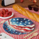 Abstract US flag ai art. Patriotic stars ands stripes red, white and blue Fourth of July party paper plates.